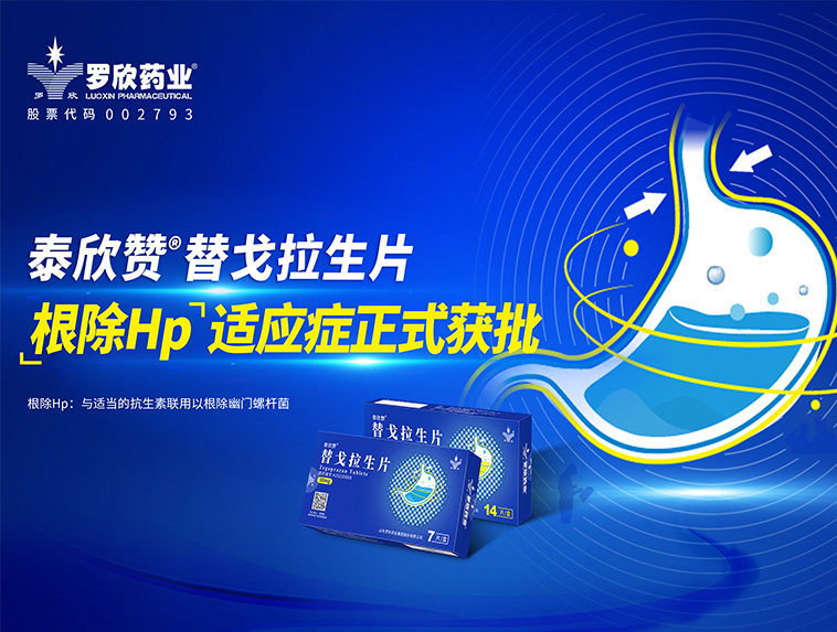 羅欣藥業(yè)創(chuàng)新藥替戈拉生片(商品名:泰欣贊?)新適應癥“與適當?shù)目股芈?lián)用以根除幽門螺桿菌”獲批上市